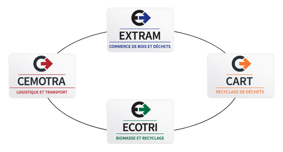 L’intégration de ces quatre sociétés au sein d’un même groupe nous permet de créer une synergie unique, où chaque entreprise alimente et soutient les activités des autres. EXTRAM collecte et fournit le bois et les déchets, CART les recycle et les transforme en matières réutilisables, ECOTRE valorise ces matériaux en biomasse et en énergie, tandis que CEMOTRA assure la logistique pour garantir un acheminement fluide et efficace.